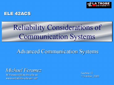 <Notice: Removed> Reliability Considerations of Communication Systems PowerPoint PPT Presentation