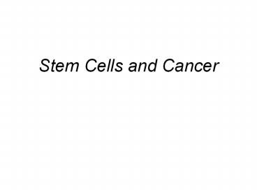 Title: Stem Cells and Cancer