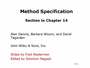 Method Specification Section in Chapter 14 Alan Dennis, Barbara Wixom, and David Tegarden John Wiley & Sons, Inc. Slides by Fred Niederman Edited by Solomon Negash – PowerPoint PPT presentation