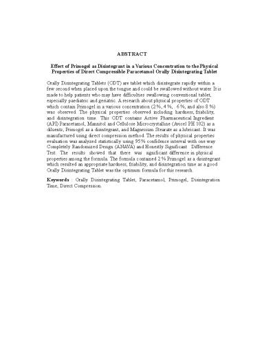 Keywords Orally Disintegrating Tablet,