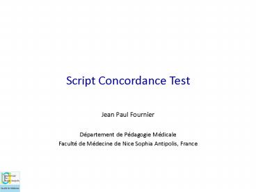 <Notice: Removed> Script Concordance Test PowerPoint PPT Presentation