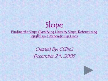 Title: Slope Finding the Slope Classifying Lines by Slope, Determining Parallel and Perpendicular Lines