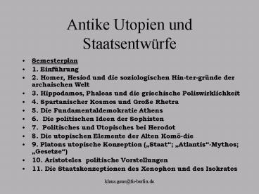 <Notice: Removed> Antike Utopien und Staatsentw PowerPoint PPT Presentation