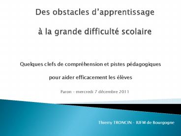 <Notice: Removed> Des obstacles d PowerPoint PPT Presentation