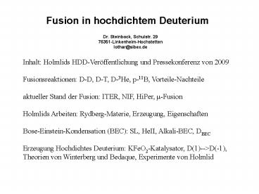 Pressekonferenz von 2009 Fusionsreaktionen D-D,