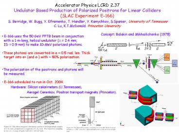 Colliders (SLAC Experiment E-166) S. Berridge,