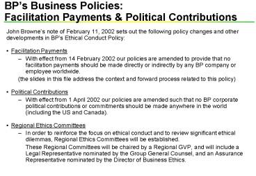 developments in BPs Ethical Conduct Policy - Facilitation Payments