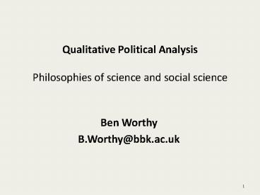 1Qualitative Political Analysis Philosophies of