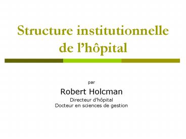 acteurs , Revue française de gestion, n 184 . - HOLCMAN R., (2007), La fin de lhôpital public ?,