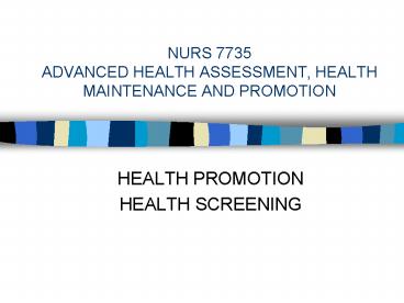 Title: NURS 7735 ADVANCED HEALTH ASSESSMENT, HEALTH MAINTENANCE AND PROMOTION