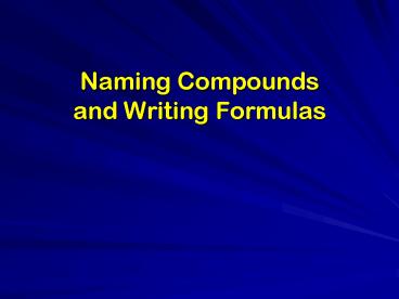 <Notice: Removed> Naming Compounds and Writing Formulas PowerPoint PPT Presentation