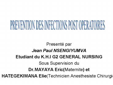 PREVENTION DES INFECTIONS POST OPERATOIRES
