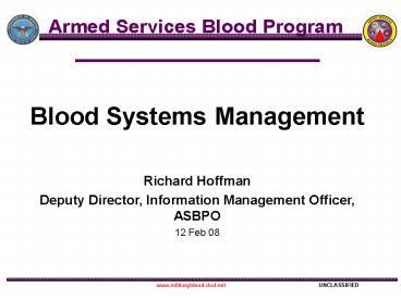 1Blood Systems Management Richard Hoffman Deputy