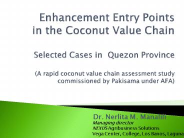 Title: Enhancement Entry Points in the Coconut Value Chain Selected Cases in Quezon Province (A rapid coconut value chain assessment study commissioned by Pakisama under AFA)