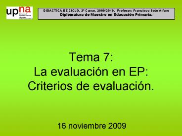 <Notice: Removed> Tema 7: La evaluaci PowerPoint PPT Presentation