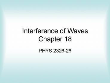 Interference of Waves Chapter 18 PowerPoint PPT Presentation