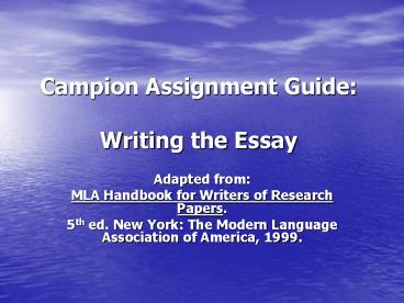 <Notice: Removed> Campion Assignment Guide: Writing the Essay PowerPoint PPT Presentation