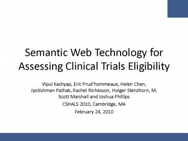 Title: Semantic Web Technology for Assessing Clinical Trials Eligibility