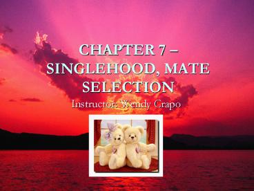 1CHAPTER 7 SINGLEHOOD, MATE SELECTION