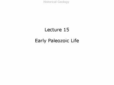 Lecture 15 Early Paleozoic Life