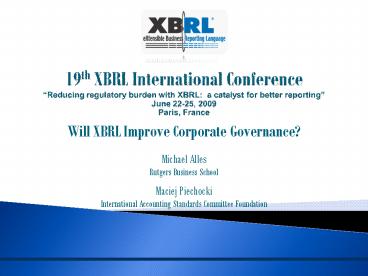 - Will XBRL Improve Corporate Governance?