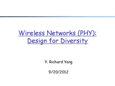 <Notice: Removed> Wireless Networks (PHY): Design for Diversity PowerPoint PPT Presentation