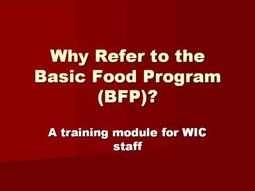 <Notice: Removed> Why Refer to the Basic Food Program (BFP)? PowerPoint PPT Presentation