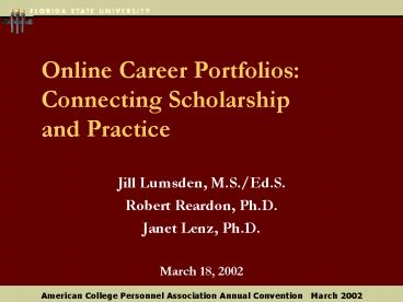 Title: Online Career Portfolios: Connecting Scholarship and Practice