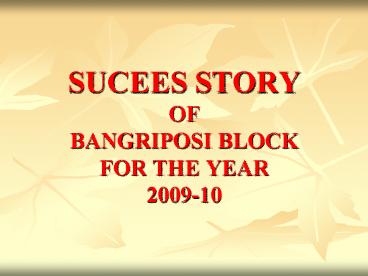 <Notice: Removed> SUCEES STORY OF BANGRIPOSI BLOCK FOR THE YEAR 2009-10 PowerPoint PPT Presentation