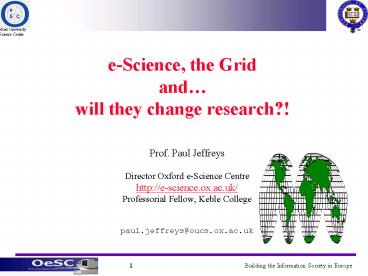 - Director Oxford e-Science Centre