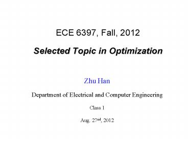 <Notice: Removed> ECE 6397, Fall, 2012 Selected Topic in Optimization PowerPoint PPT Presentation