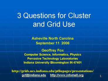 <Notice: Removed> 3 Questions for Cluster and Grid Use PowerPoint PPT Presentation