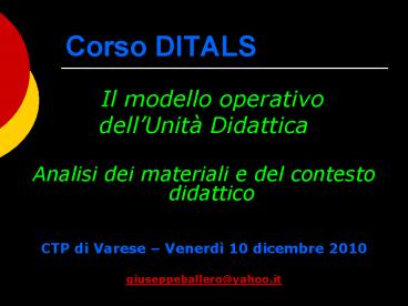 <Notice: Removed> Corso DITALS PowerPoint PPT Presentation
