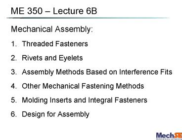 <Notice: Removed> Mechanical Assembly: PowerPoint PPT Presentation
