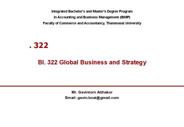 Title: ??. 322 ??????? ?????????????????????????? BI. 322 Global Business and Strategy