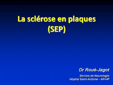 Dr Roué-Jagot Service de Neurologie