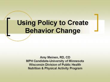 <Notice: Removed> Using Policy to Create Behavior Change PowerPoint PPT Presentation