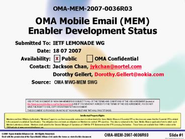 <Notice: Removed> OMA-MEM-2007-0036R03 OMA Mobile Email (MEM) Enabler Development Status PowerPoint PPT Presentation