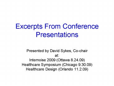 <Notice: Removed> Excerpts From Conference Presentations PowerPoint PPT Presentation