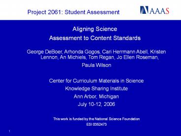 <Notice: Removed> Aligning Science Assessment to Content Standards PowerPoint PPT Presentation