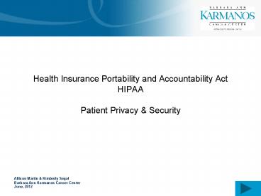 accordance with HIPAA. - Karmanos, a Covered Entity under HIPAA, is