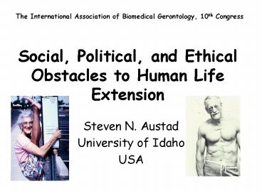 Title: Social, Political, and Ethical Obstacles to Human Life Extension