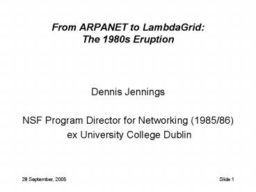 1From ARPANET to LambdaGrid The 1980s Eruption