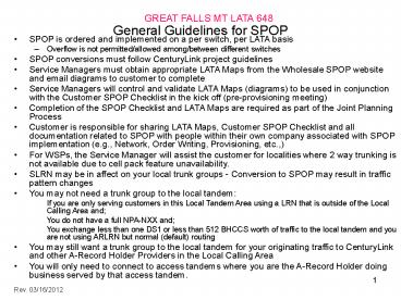 different switches - SPOP conversions must follow CenturyLink project