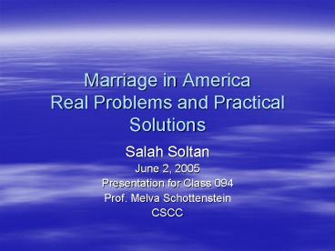 Title: Marriage in America Real Problems and Practical Solutions