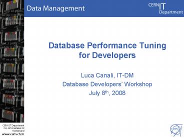 <Notice: Removed> Database Performance Tuning for Developers PowerPoint PPT Presentation