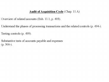 <Notice: Removed> Audit of Acquisition Cycle (Chap. 11 A) PowerPoint PPT Presentation
