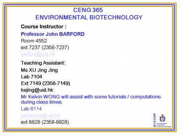 Title: CENG 365 ENVIRONMENTAL BIOTECHNOLOGY