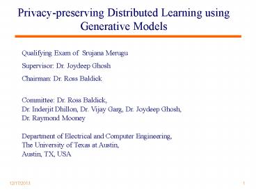 <Notice: Removed> Privacy-preserving Distributed Learning using Generative Models PowerPoint PPT Presentation