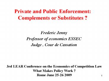 Title: Private and Public Enforcement: Complements or Substitutes ?